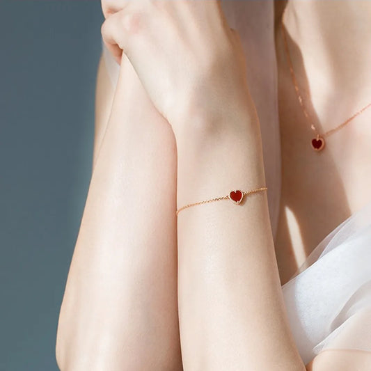 Red Chalcedony Rose Gold Love Heart Shape Bracelet