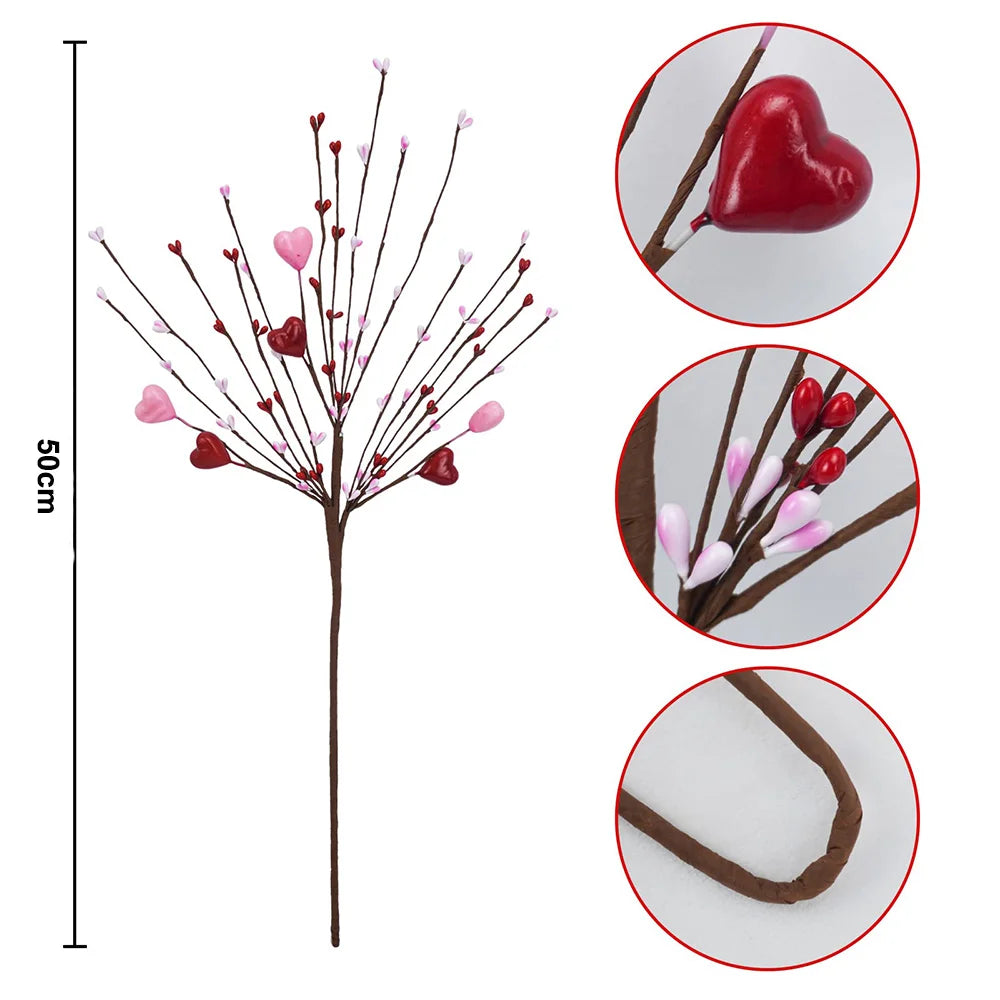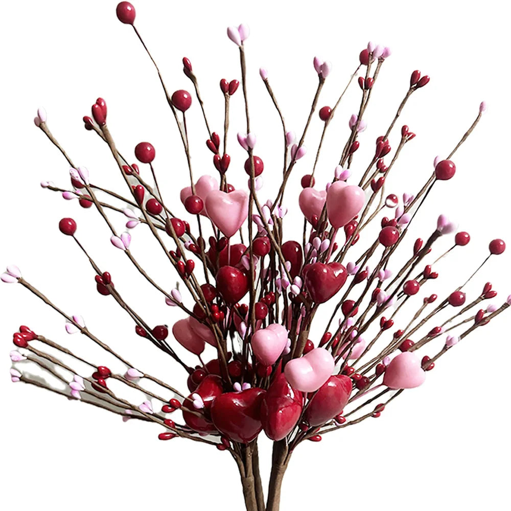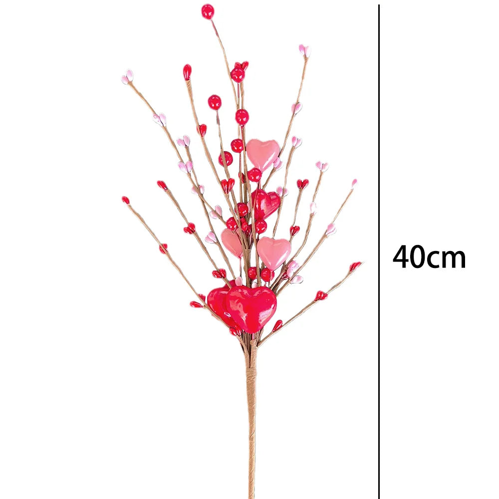 4PCS Valentine’s Day Mother’s Day Wedding Propose Gifts Artificial Red Berry Flower Stems Heart Shaped Berry Picks