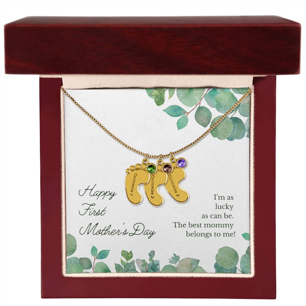 Baby Feet with Birthstones Necklace - First Mother's Day