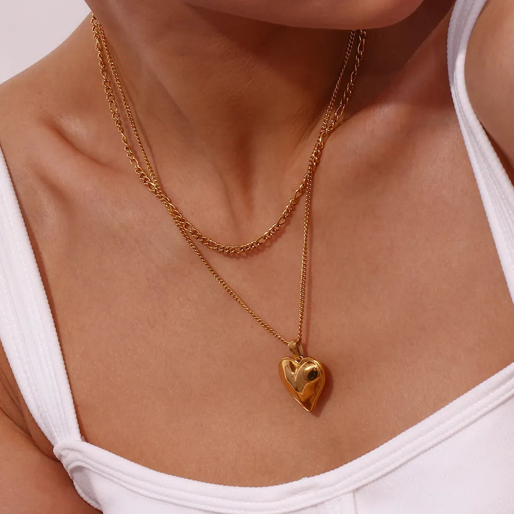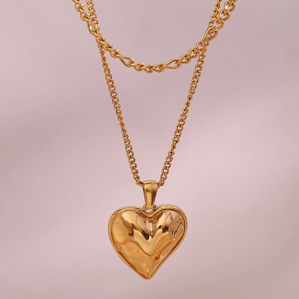 Gold Plated Casting Heart Pendant Double Layers Necklace