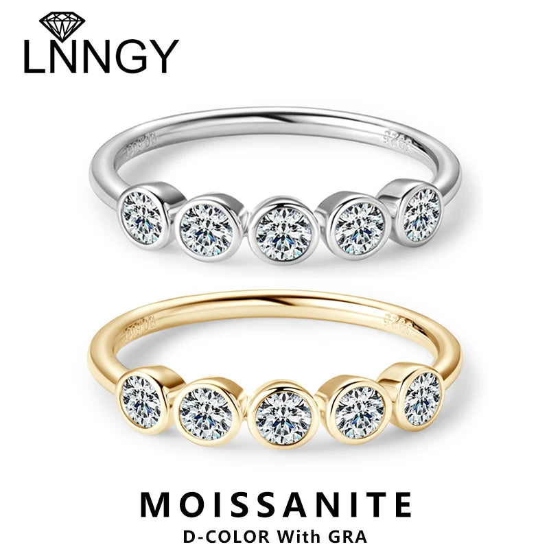 Lnngy Bezel 3mm Moissanite Ring With Certificate 925 Sterling Silver Rings for Women Couples Delicate Wedding Bands Jewelry Gift
