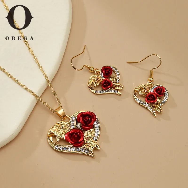 Obega Creative Love Rose Heart Pendant Necklace For Women